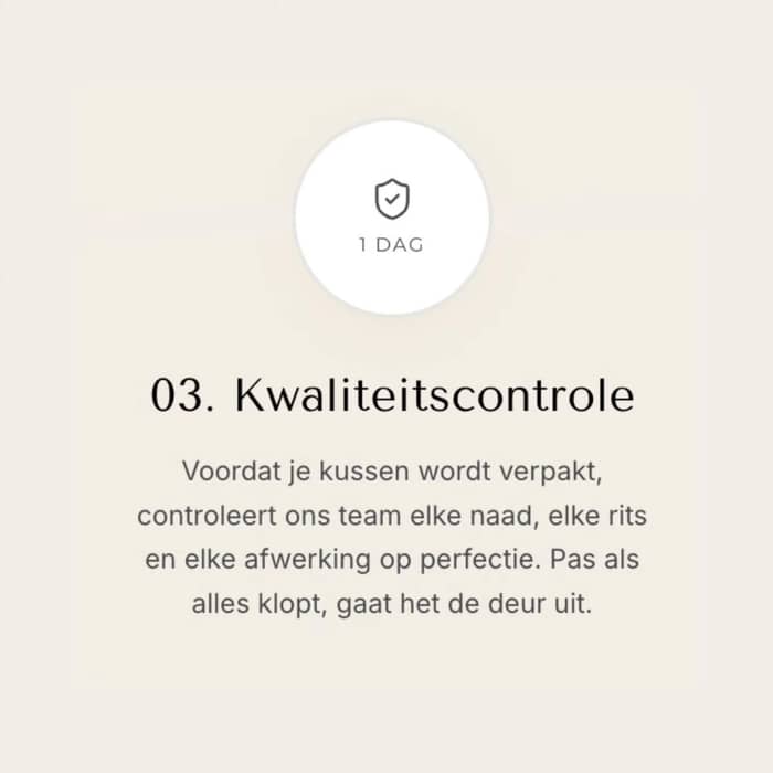 Voordat je kussen wordt verpakt, controleert ons team elke naad, elke rits en elke afwerking op perfectie. Pas als alles klopt, gaat het de deur uit.